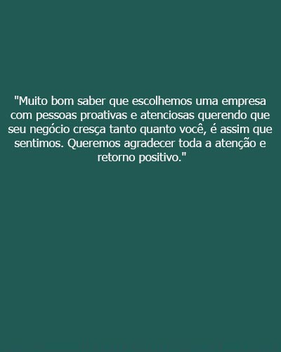 "Muito bom saber que escolhemos uma empresa com pessoas proativas e atenciosas querendo que seu negócio cresça tanto quanto você, é assim que sentimos. Queremos agradecer toda a atenção e retorno positivo."