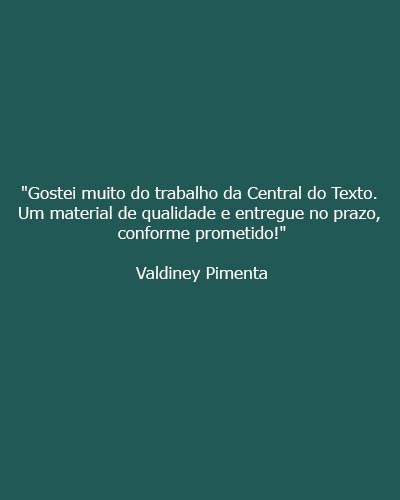 "Gostei muito do trabalho da Central do Texto. Um material de qualidade e entregue no prazo, conforme prometido!"